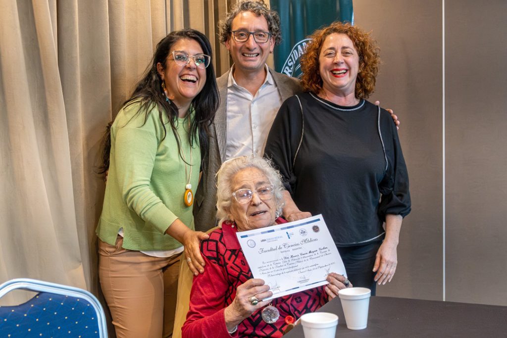 En el encuentro se entregaron certificados a quienes cursaron el 1° cuatrimestre de manera presencial. Además, fue homenajeada la Doctora Honoris Causa Myriam Gorban por sus 75 años de profesión, en el marco de los 90 años de la Escuela de Nutrición (UBA).
