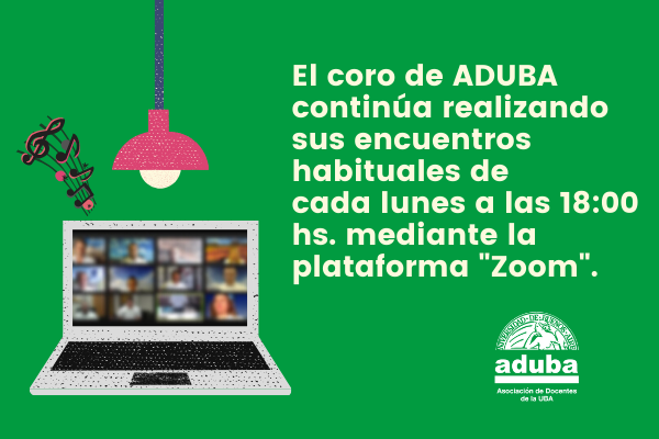 El coro de ADUBA continúa realizando sus encuentros habituales de cada lunes a las 18:00 hs. mediante la plataforma «Zoom». De esta manera, sus integrantes pueden