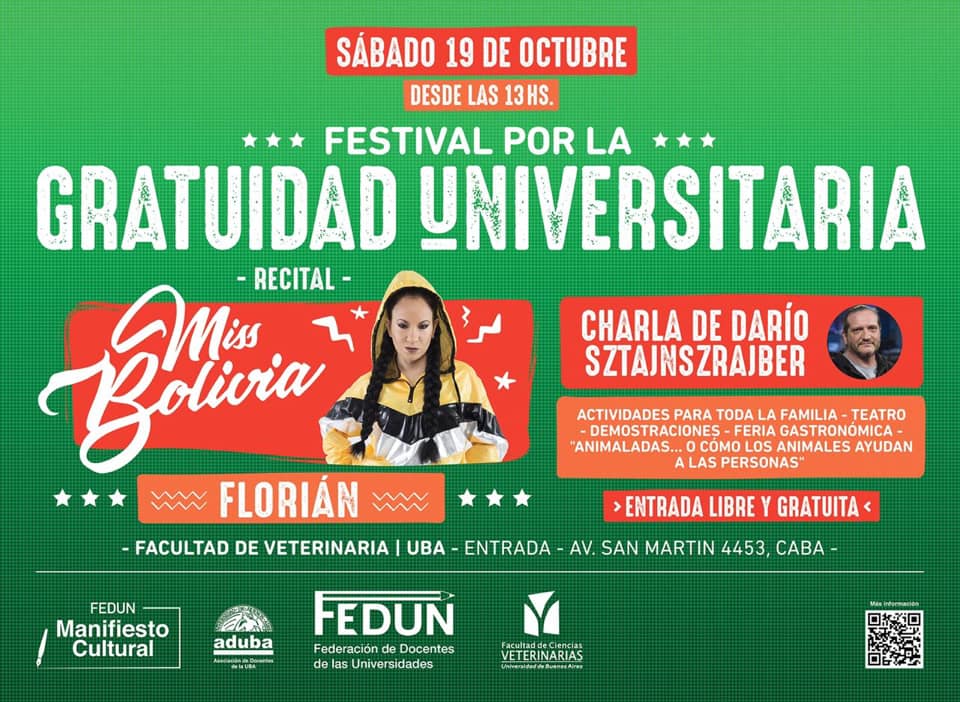 En el 70° aniversario del año de la Gratuidad Universitaria, la Federación de Docentes de las Universidades (FEDUN) invita a disfrutar de un festival abierto