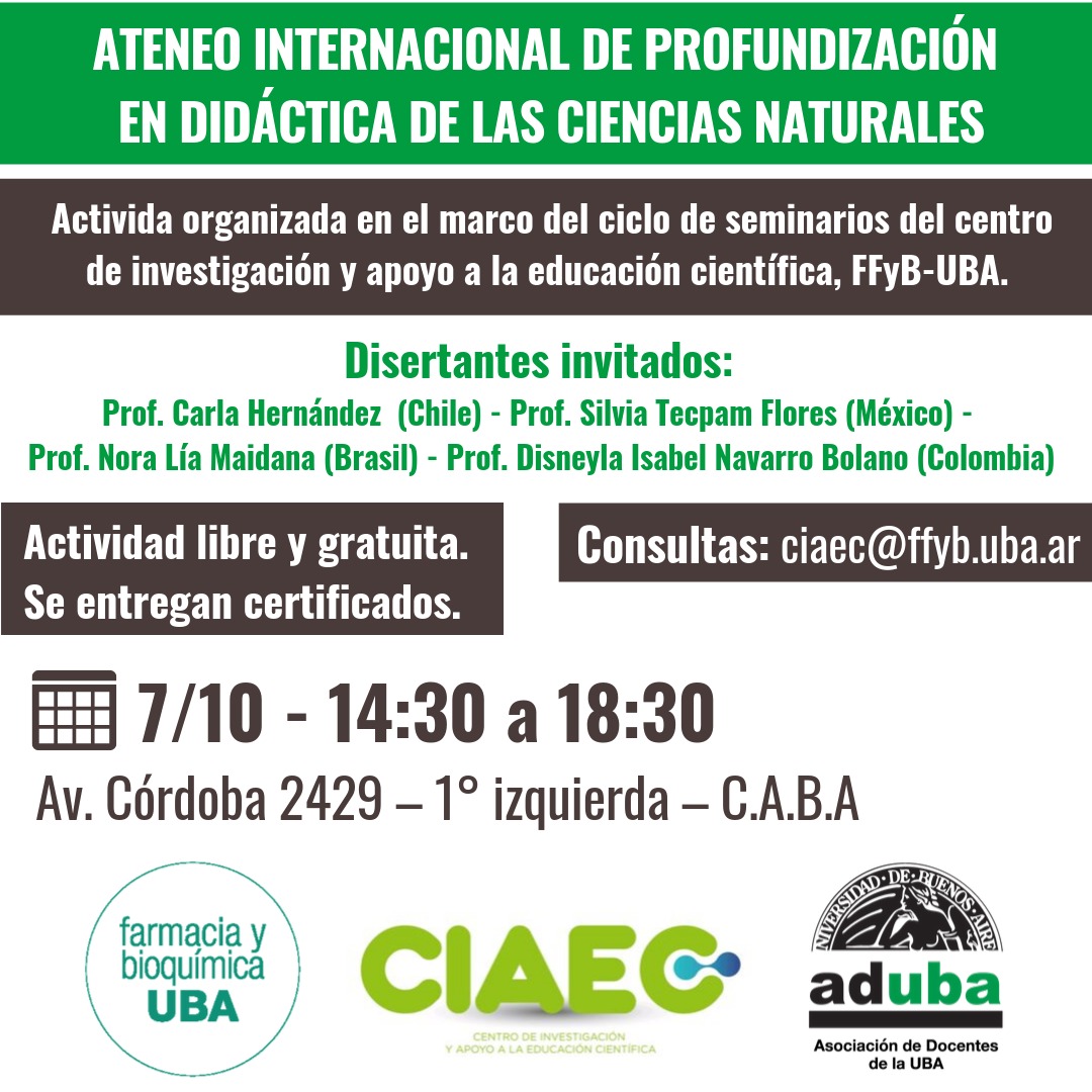 ACTIVIDAD LIBRE Y GRATUITA. SE ENTREGARÁN CERTIFICADOS DE ASISTENCIA. En el ateneo discutiremos de manera dinámica algunos aspectos de la didáctica de las ciencias naturales