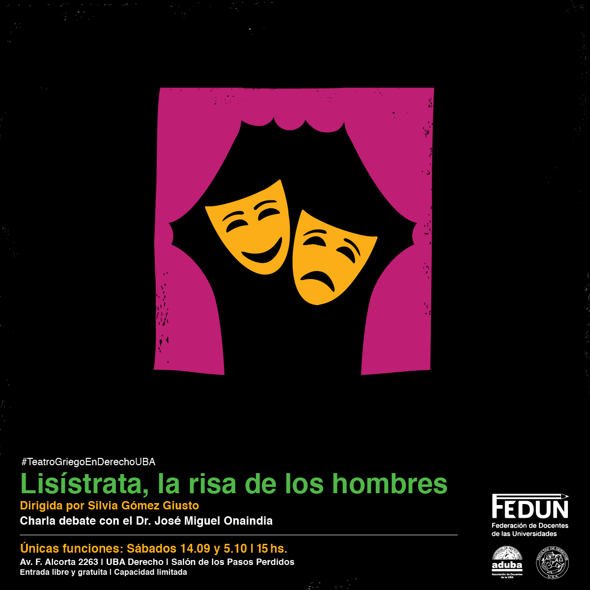 La Federación de Docentes de las Universidades (FEDUN) y la Facultad de Derecho de la Universidad de Buenos Aires invitan a disfrutar de “LISÍSTRATA, la risa