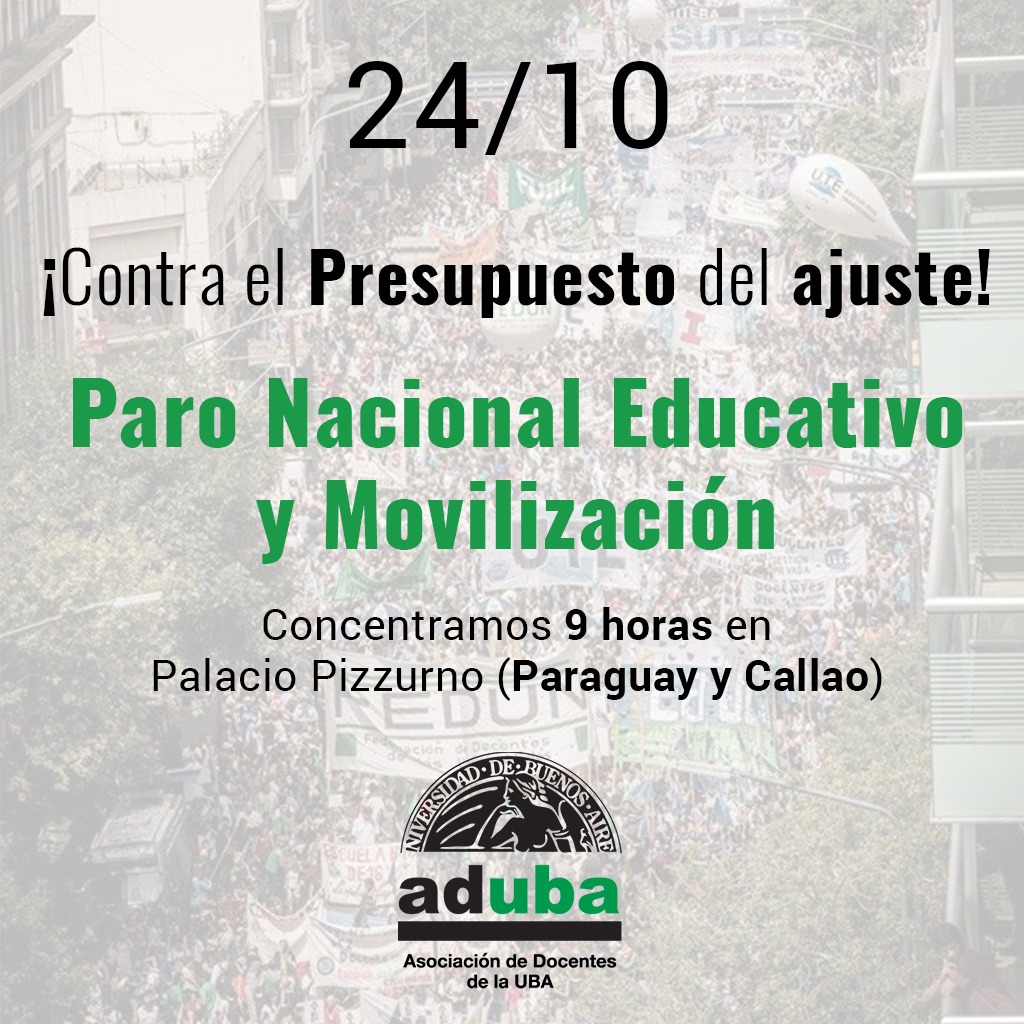 24 DE OCTUBRE: PARO Y MOVILIZACIÓN LA UNIVERSIDAD VA AL CONGRESO ¡NO al presupuesto del FMI! Por mayor presupuesto para la educación, la universidad, la