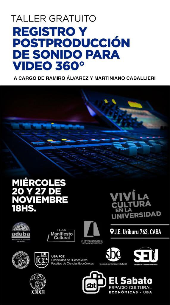El taller fue dictado por el especialista Gabriel Pomeraniec, cofundador de las productoras 25PFilms y Virtual360, reconocido Director, Director de Fotografía y docente en proyectos televisivos, publicitarios, cinematográficos, documentales e inmersivos.