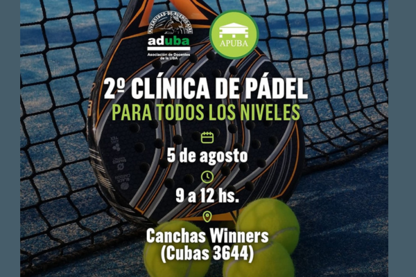 El sábado 5 de agosto en las canchas Winners, ubicadas en José Cubas 3644, CABA, se realizará una clínica de pádel para los afiliados y las afiliadas de ADUBA y APUBA…Leer más